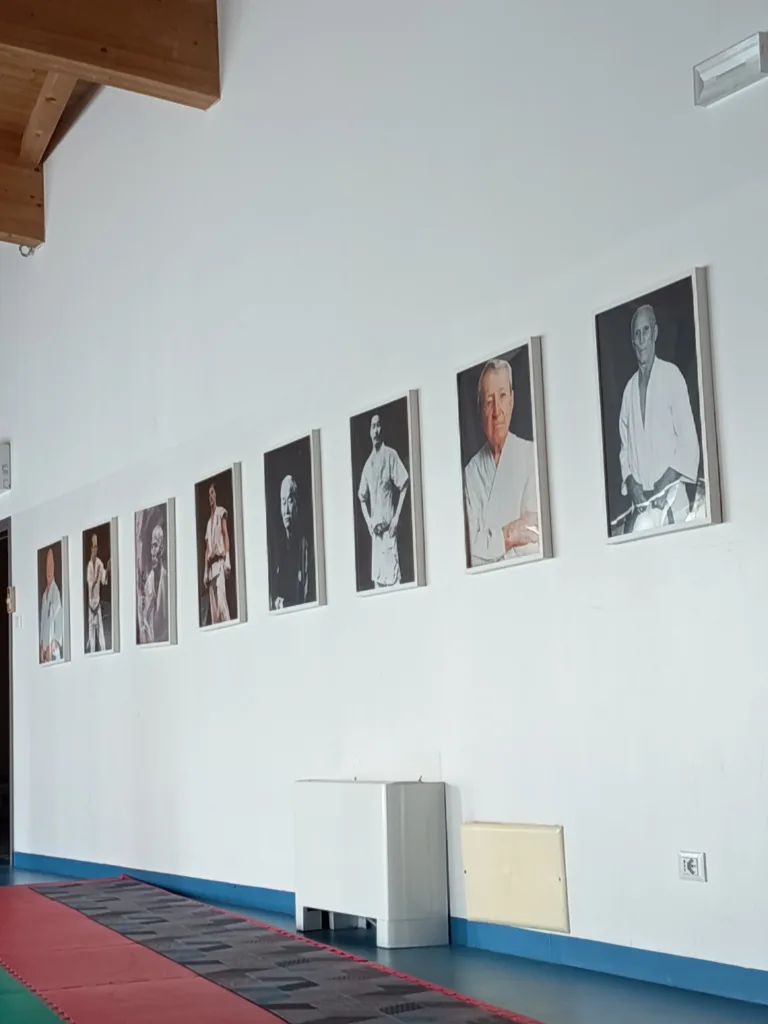 Appendere le foto dei maestri fondatori o delle figure più rappresentative del Budo non è un semplice ornamento. È un gesto che custodisce memoria e gratitudine, ricorda la disciplina che ci ha preceduti e ci ricorda quella che siamo chiamati a incarnare. Guardare quei volti significa riconoscere una storia più grande di noi, sentirsi parte di una linea di pratica e di valori che continua attraverso ogni allenamento. In questo modo il dojo non è solo un luogo: diventa un ponte vivo con le radici del Budo.
